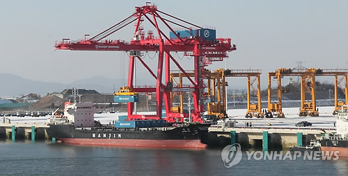| 경인항인천터미널 컨테이너 부두에서 수출화물을 선적하고 있는 모습(자료사진) |